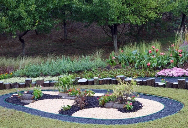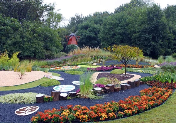花境植床一般應(yīng)稍高出地面,內(nèi)以種植多年生宿根花卉和開花灌木為主,在有路牙的情況下處理與花壇相同。沒有路牙的,植床外緣與草地或路面相平,中間或內(nèi)側(cè)應(yīng)稍稍高起,形成5°至10°的坡度,以利于排水。